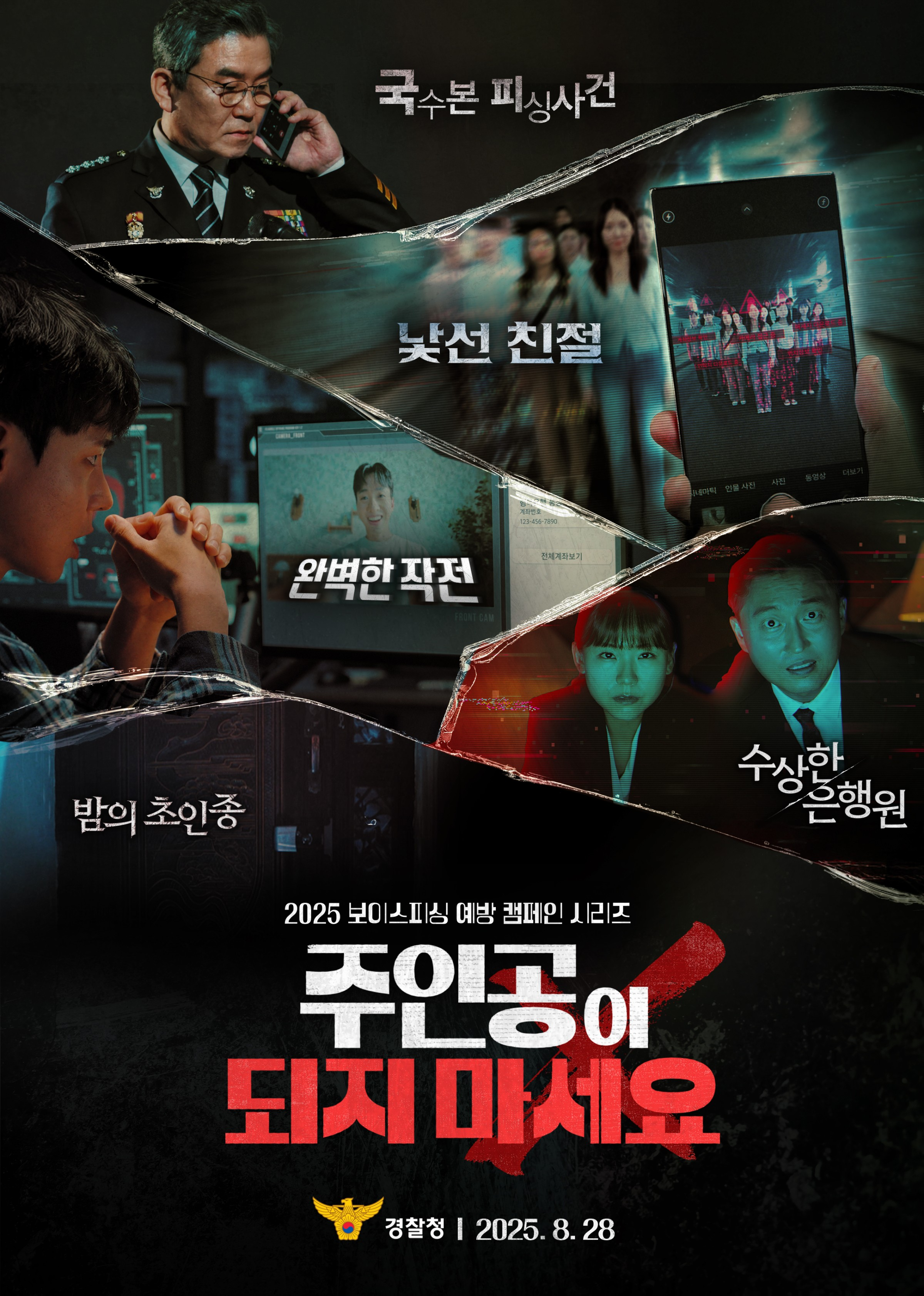 이번 홍보 캠페인은 ‘짜여진 각본의 주인공이 되지 마세요’라는 핵심 메시지를 전한다. 보이스피싱 범죄가 치밀하게 짜여진 시나리오에 따라 진행된다는 점을 강조하면서 국민이 그 각본 속에 피해자가 돼선 안 된다는 의미다.