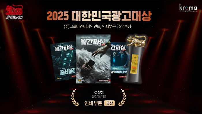 종합광고 에이전시 크로마엔터테인먼트는 경찰청과 함께 제작한 범죄예방 웹진 ‘월간피싱 ZERO’로 ‘2025 대한민국광고대상’ 인쇄부문 금상을 수상했다고 2일 밝혔다.